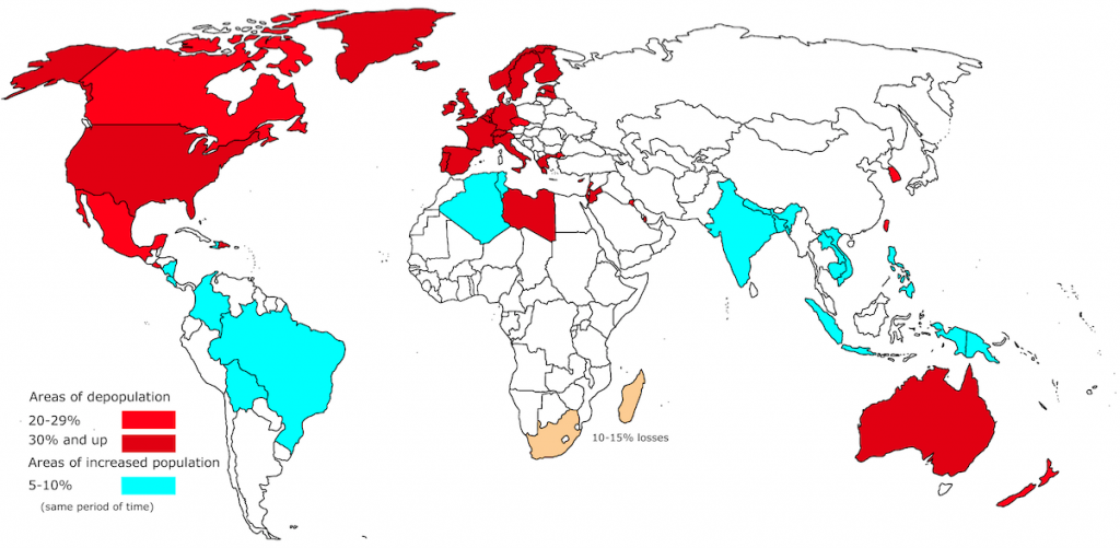 Perhaps even more shocking is the fact that nearly all of the countries colored red on the map are considered to be western civilizations. As we all know, threats to destroy western civilization have been made for centuries, particularly from radical Islamists who seek to convert or slaughter all non-believers and ultimately establish a global caliphate. If the bold predictions portrayed on this map aren’t Biblical in nature, then the depopulation must be the result of violent force initiated by mankind itself.